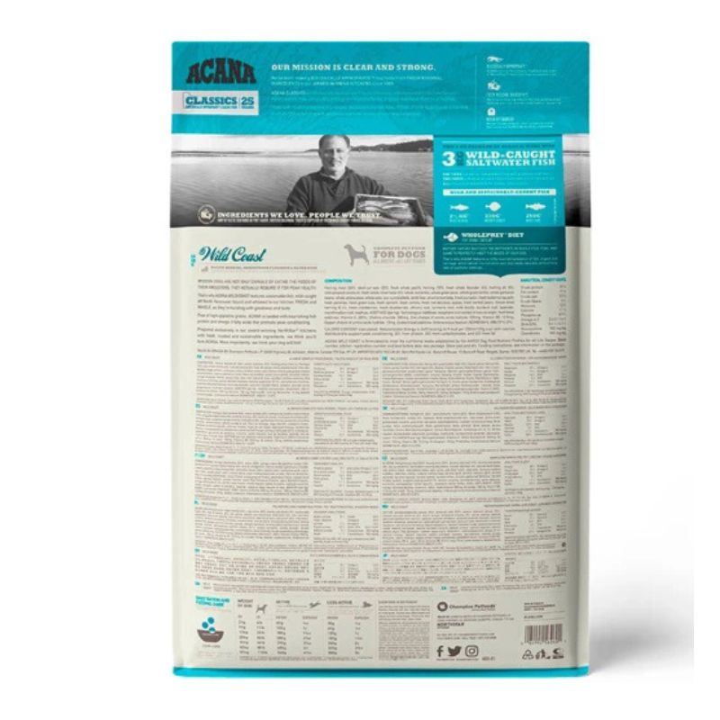 Acana Classics Wild Coast 9,7 Kg es un alimento seco de alta calidad para perros adultos de todas las razas, formulado para entregar una nutrición completa, sabrosa y equilibrada cada día. Su receta se inspira en la dieta natural del perro e incorpora como base pescados silvestres seleccionados por su aporte proteico y su excelente perfil de grasas saludables.