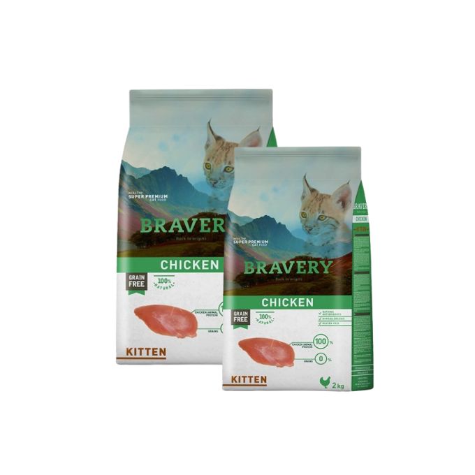 Bravery Kitten Pollo 2kg es una excelente elección para asegurar que tu gatito reciba una alimentación adecuada y deliciosa.